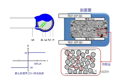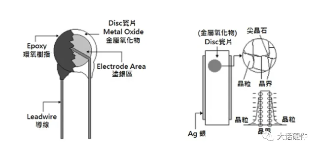 壓敏電阻器件構(gòu)造如下圖所示