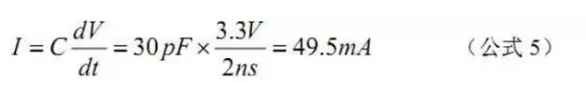 設負載(容性)為 30pF,要在 2ns 內(nèi)從 0V 驅(qū)動到 3.3V,瞬態(tài)電流為:
