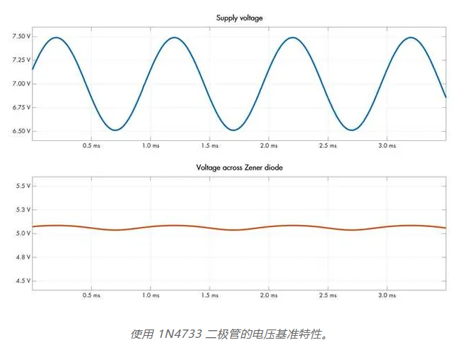 本文前面顯示的 V-I 圖告訴我們,一旦反向擊穿開(kāi)始,施加電壓的微小變化就可以在流過(guò)的電流中產(chǎn)生相對(duì)較大的擺幅。我們也可以從另一個(gè)角度來(lái)看:如果通過(guò)二極管的電流以某種方式受到限制,那么該電流的波動(dòng)對(duì)二極管兩端產(chǎn)生的電壓影響相對(duì)較小。