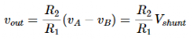 根據(jù)應(yīng)用,Iload可高達(dá)數(shù)百安培。因此,即使是很小的Rstray值也會(huì)產(chǎn)生相當(dāng)大的誤差電壓Verror。該誤差電壓將被放大器放大并出現(xiàn)在輸出端。由于銅電阻的溫度系數(shù)相當(dāng)高(約0.4%/℃),Rstray的值會(huì)隨溫度發(fā)生很大變化。因此,當(dāng)該電路應(yīng)用在大范圍溫度變化的場(chǎng)景時(shí),寄生電阻會(huì)會(huì)因溫度變化產(chǎn)生相當(dāng)大的誤差。因此,為了降低誤差電壓Verror,我們應(yīng)該避免長(zhǎng)走線(xiàn)以最小化Rstray。值得一提的是,消除Rstray誤差的更有效解決方案是差分放大器而不是單端放大器。單端放大器檢測(cè)節(jié)點(diǎn)A相對(duì)于地的電壓。然而,差分放大器具有差分輸入可以檢測(cè)Rshunt兩端的電壓。如下圖所示: