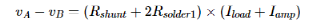 請(qǐng)注意,電流Iload無(wú)需通過(guò)Rsolder2即可返回其源。測(cè)得的電壓為: