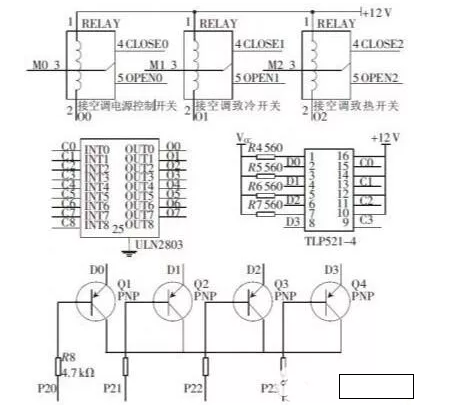 根據(jù)集成電路驅(qū)動器2003的輸入輸出特性,有人把它簡稱叫“驅(qū)動器”“反向器”“放大器”等,現(xiàn)在常用型號為:TD62003AP。當(dāng)2003輸入端為高電平時,對應(yīng)的輸出口輸出低電平,繼電器線圈通電,繼電器觸點(diǎn)吸合;當(dāng)2003輸入端為低電平時,繼電器線圈斷電,繼電器觸點(diǎn)斷開;在2003內(nèi)部已集成起反向續(xù)流作用的二極管,因此可直接用它驅(qū)動繼電器。