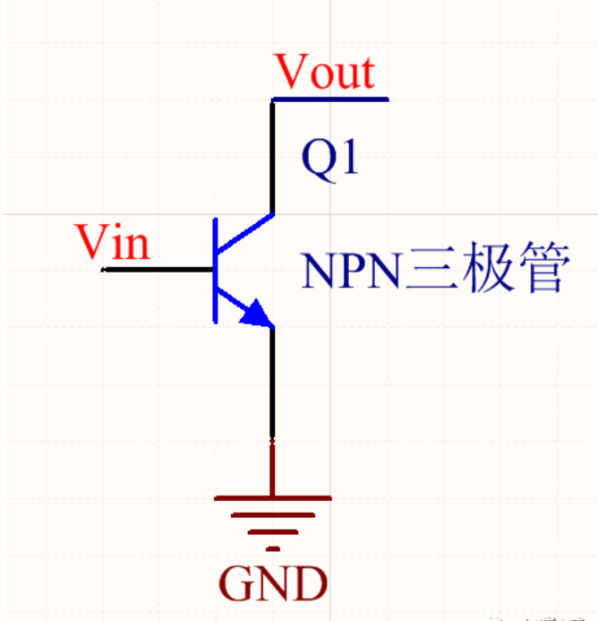 當Vin沒有電流,Q1斷開時,上拉電源給輸入電流,LED亮。當Vin流入電流,Q1導通時,導致led無壓差,LED滅。