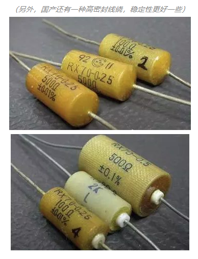 ⑤ 精密線繞:電阻絲一般采用精密錳銅,密封后穩(wěn)定性得到提高,實際測試了大量的0.01%電阻,絕大多數(shù)數(shù)年后仍然能保持在0.02%之內(nèi)。溫度系數(shù)也因為選材和工藝達到較高水平,大約是5ppm/℃到20ppm/℃之間。新品價格大約5元/只。