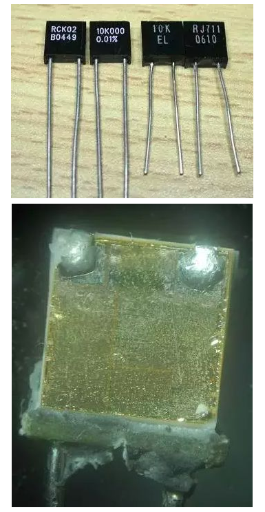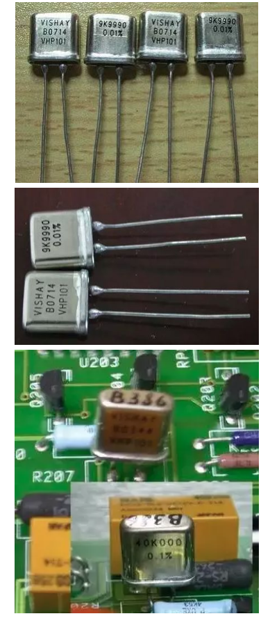 ⑨ 金封塊電阻:這是目前最高等級的電阻,內(nèi)部結(jié)構(gòu)同上但采用金屬陶瓷密封(外形類似晶振),徹底杜絕外界老化因素,同時零溫度系數(shù)技術(shù)使得溫度系數(shù)達到很難測量出來的程度。老化典型值2ppm/年,有的達到0.5ppm/年以下。新品價格大約400元/只,西方國家對我國實行封鎖,嚴禁進口用于軍事目的,連8位半的萬用表3458A也僅僅用了一只(做內(nèi)部標準電阻)。
