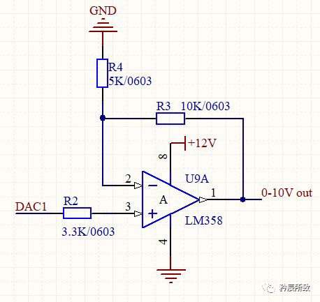 比如我們最常見的單片機供電系統(tǒng)為:0 ~ 3.3V。那么我們就可以將 0 ~ 3.3 V 放大 3倍,實現 0~ 10V 的輸出。