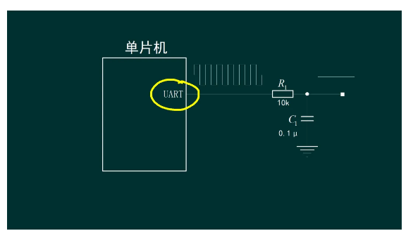 利用單片機(jī)的端口,輸出一個占空比可以調(diào)節(jié)的方波信號,經(jīng)過RC低通濾波器,去除其中的交流分量之后,便可以輸出方波信號中的直流信號。那么就剩下一個問題了,如何應(yīng)用 UART 輸出一個高電平占空比可以改變的方波信號呢?