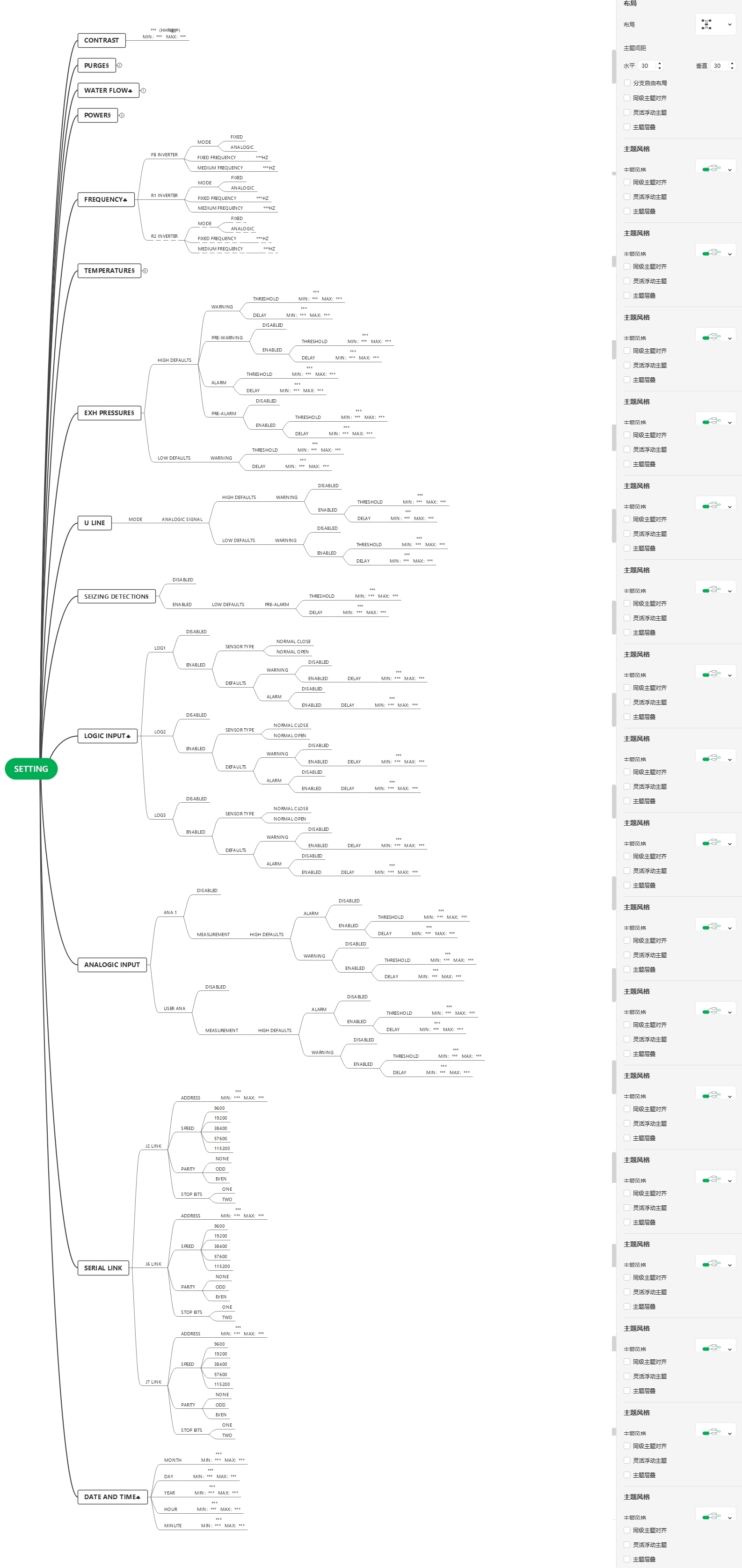 多級(jí)菜單的處理方式,采用了鏈表來(lái)管理,將每個(gè)節(jié)點(diǎn)作為一個(gè)結(jié)構(gòu)體,其功能有,進(jìn)入執(zhí)行一次,退出執(zhí)行一次,進(jìn)入退出都執(zhí)行一次,周期執(zhí)行,功能提供全面,可以根據(jù)需求選擇。同時(shí)支持多國(guó)語(yǔ)言,快捷鍵,查詢父級(jí)菜單功能等。整體架構(gòu)清晰,與思維導(dǎo)圖一致,非常便于后期維護(hù)。