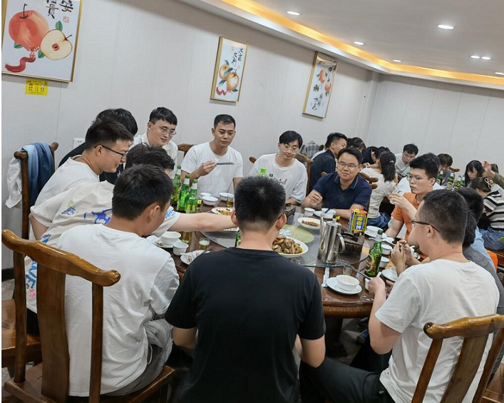 為了感謝領(lǐng)導(dǎo)關(guān)懷,我們向領(lǐng)導(dǎo)敬上了滿懷深情的佳釀,同時也祝賀瞿工和楊工新婚快樂,在一片歡聲笑語中,在一陣陣熱鬧聲中聚餐活動落下了帷幕。