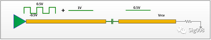 這就是信號通過AC耦合電容后,隔去直流成分,以及達(dá)到收發(fā)芯片使用不同電平的效果;