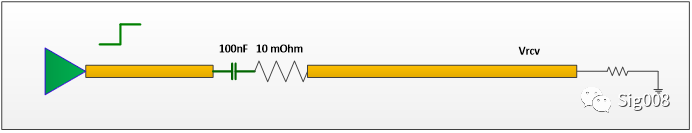 我們經(jīng)常見到信號中串有耦合電容,如下結(jié)構(gòu)。