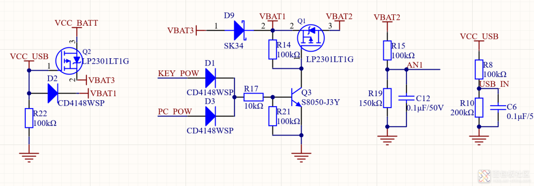 USB供電過來后到VBAT2,直接繞過控制PMOS就可以。