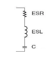 圖中ESR是電容的串聯(lián)等效電阻,ESL是電容的串聯(lián)等效電感,C才是真正的理想電容。