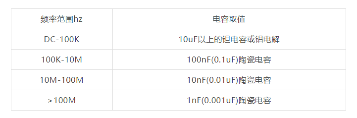 而在靠近芯片的地方放一些10uF和0.1uF的電容來去耦,陶瓷電容有很低的ESR。說了那么多,那到底我們在靠近芯片的管腳處放置0.1uF還是0.01uF,下面列出來給大家參考: