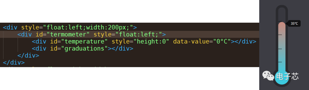 查閱資料,在原本的代碼外圍增加div,并且設(shè)置style="float:left;width:200px;",其中float:left;是讓第一個溫度計(jì)居左,width:200px;是這是溫度計(jì)的寬度,否則兩個溫度計(jì)會挨的特別近。