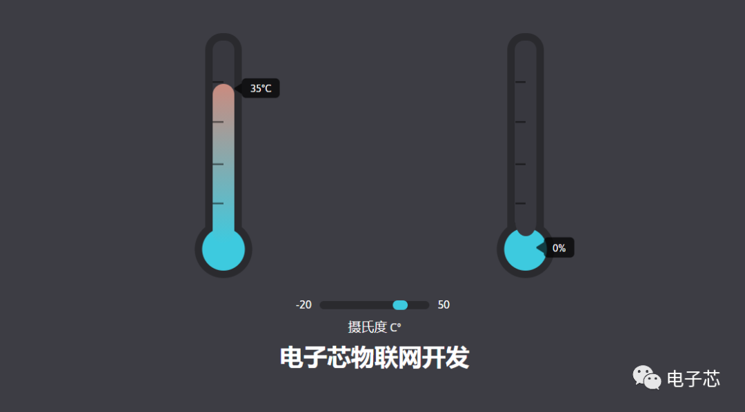 在制作教程的時候,為了顯示出濕度,將溫度計(jì)的網(wǎng)頁界面進(jìn)行復(fù)制,改成濕度計(jì)。在簡單的復(fù)制中發(fā)現(xiàn)一些問題。如下是上次制作的溫度監(jiān)控界面,本次復(fù)制一個溫度計(jì)作為濕度計(jì)。