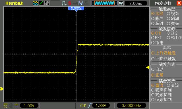 探頭接在運放輸出引腳(1腳)上,時基為 2ms , LED 由亮到滅時波形截圖如下: