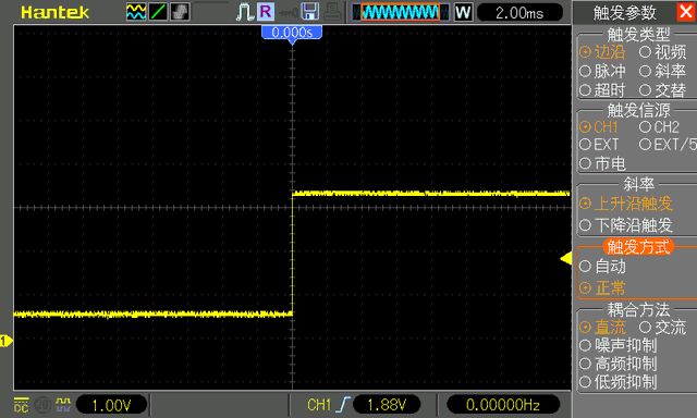 我們把示波器探頭放到比較器芯片輸出引腳 7 上,看看波形。觸發(fā)方式設置為正常, 這樣只有發(fā)生觸發(fā)時波形才會刷新,否則波形不動。我們將時基調整到 2ms 時, 旋轉電位計,LED 由亮到滅時截取的波形如下: