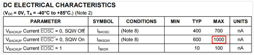DS1339U-33+在Vbat供電時(shí),最大的供電電流是1uA,125mA的電池能用多久,125x1000/1=125000小時(shí),按照這樣計(jì)算電池能用14年,但是電池的自耗電3年內(nèi)10%,也就是112.5mA,也能用12.8年,那這個(gè)時(shí)間已經(jīng)很長(zhǎng)了,考慮到氣候溫度的影響,再怎么用也有6年沒問題。